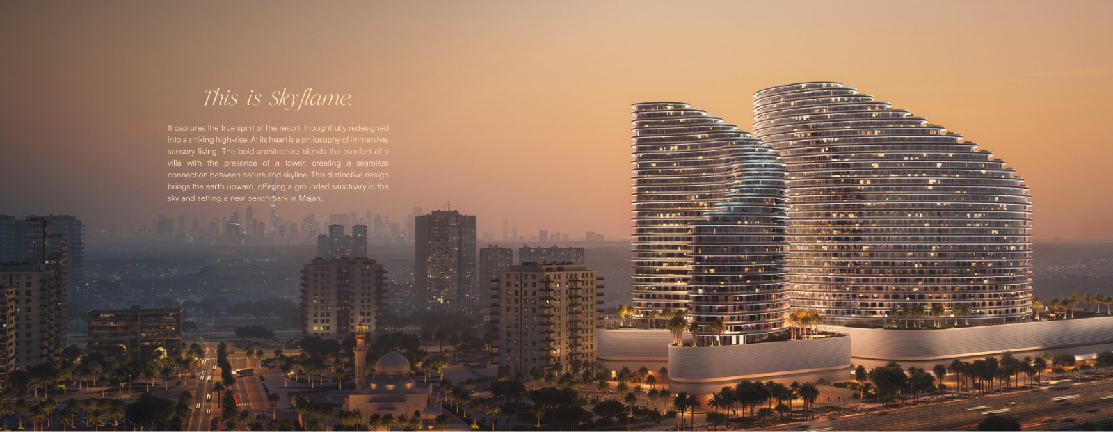פרויקט מגורים יוקרתי הממוקם ב-Majan, דובאי, המציע סגנון חיים מודרני המשלב יוקרה, נוחות ומגורים חכמים. הפרויקט מורכב משני מגדלים מרשימים מבחינה ארכיטקטונית שעוצבו בסגנון המזוהה של Binghatti, היוצרים נוכחות קו רקיע ייחודית תוך אספקת נופים פנורמיים וחללי מגורים מוגבהים. הפיתוח כולל מגוון רחב של יחידות מגורים הכוללות דירות סטודיו, דירות חדר שינה אחד ודירות שני חדרי שינה, כולן מעוצבות עם גימורים ברמה גבוהה וטכנולוגיית בית חכם.