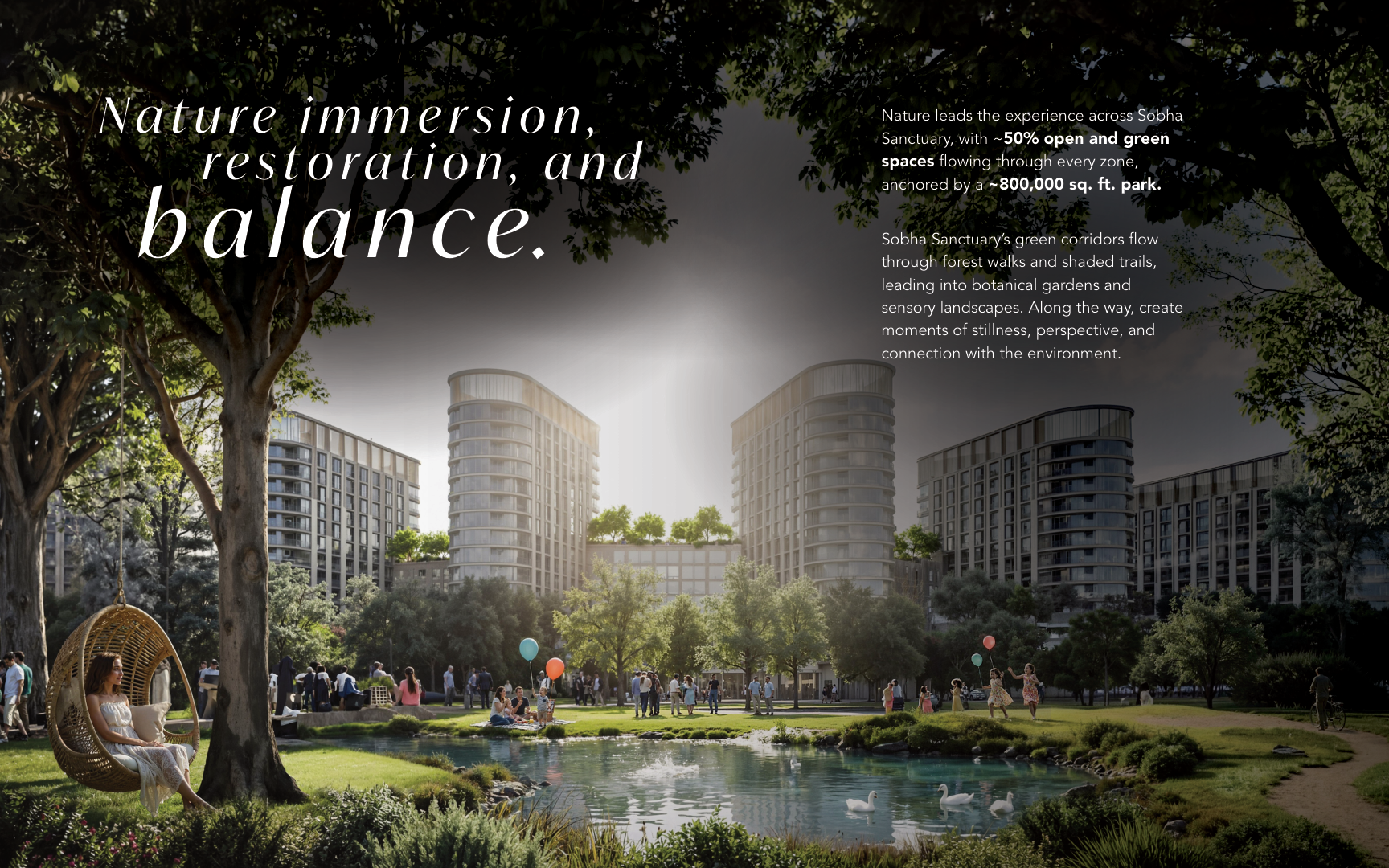 קהילה יוקרתית ממוקדת-משפחה המעוצבת להציע סגנון חיים מעודן המוקף בטבע, פרטיות ונוחות מודרנית. הפרויקט, השוכן בתוך סביבה המתוכננת בקפידה עם למעלה מ-50% שטחים ירוקים ופתוחים, כולל לגונה בסגנון אתר נופש, מסלולי הליכה ורכיבה על אופניים נרחבים, מתקני בריאות וספורט, ומרכזי קניות וחברה תוססים. הווילות מעוצבות במחשבה תחילה עם פריסות מרווחות וארכיטקטורה עכשווית, ומציעות אפשרויות של 4, 5 ו-6 חדרי שינה, מה שהופך אותן לבחירה אידיאלית עבור משפחות המחפשות מגורי יוקרה וערך לטווח ארוך באחד מיעדי המגורים המבטיחים ביותר בדובאי.